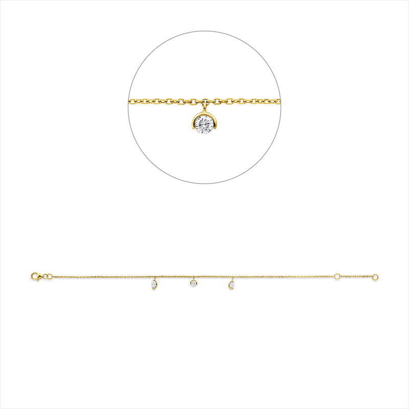 Armband 18 kt GG, mit ZÖ 16 cm, 1 Nav. 0,11 ct, TW-si, 1 Tropfen 0,07 ct, TW-si, 1 Brill. 0,09 ct, TW-si