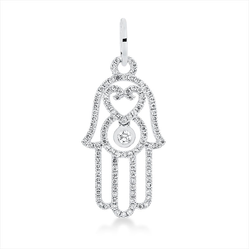 Anhänger 18 kt WG Hamsa. mit Öse. 1 Brill. 0.03 ct. TW-si. 112 Brillanten 0.32 ct. TW-si