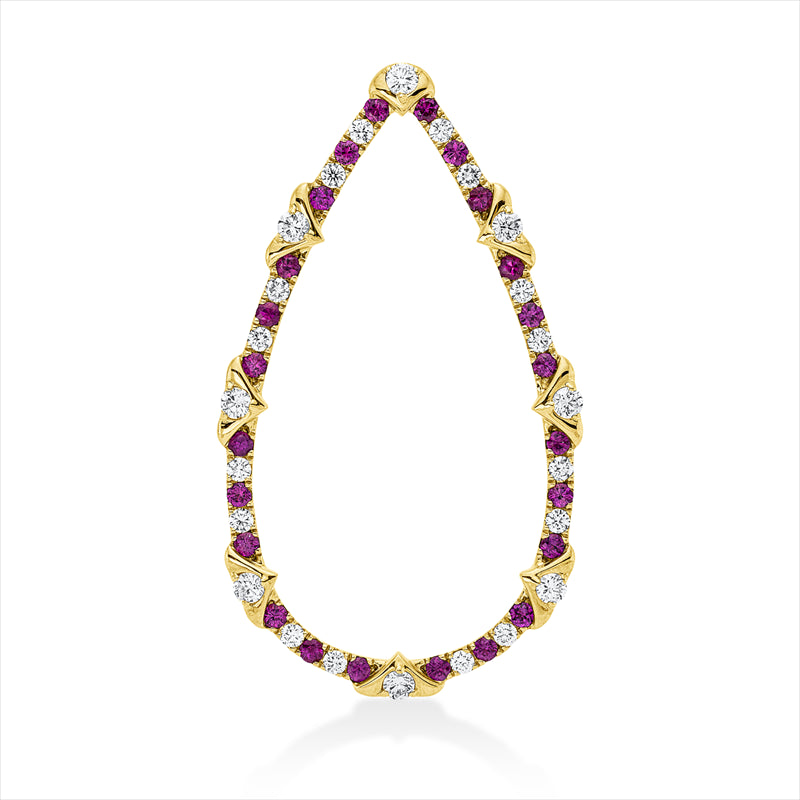 Anhänger 18 kt GG, 8 Brill. 0,94 ct, TW-vsi/si, 16 Brill. 0,87 ct, TW-vsi/si, 24 Rubine 1,83 ct rot