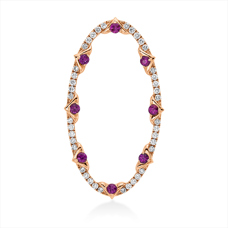 Anhänger 18 kt RG, 40 Brill. 0,98 ct, TW-vsi/si, 8 Rubine 0,88 ct rot