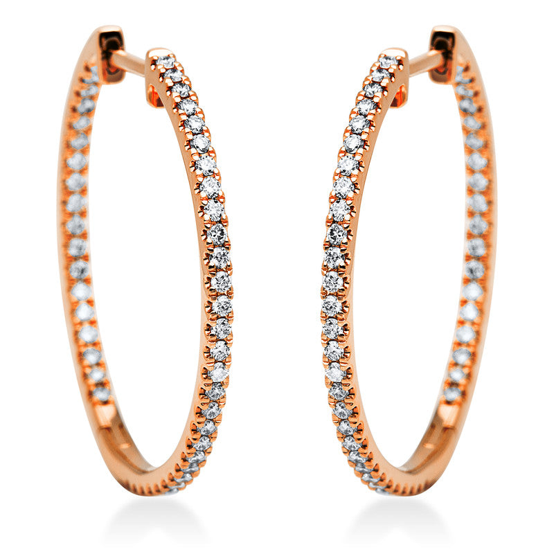 Creolen 18 kt RG. 94 Brillanten 0.65 ct. TW-si. H:26.2 mm. B:26.1 mm. S:1.6 mm