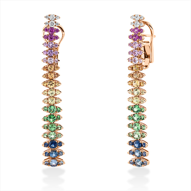 Ohrschmuck 18 kt RG. 12 Brillanten 0.23 ct. TW-vsi/si. 102 Saphire 4.25 ct fancy
