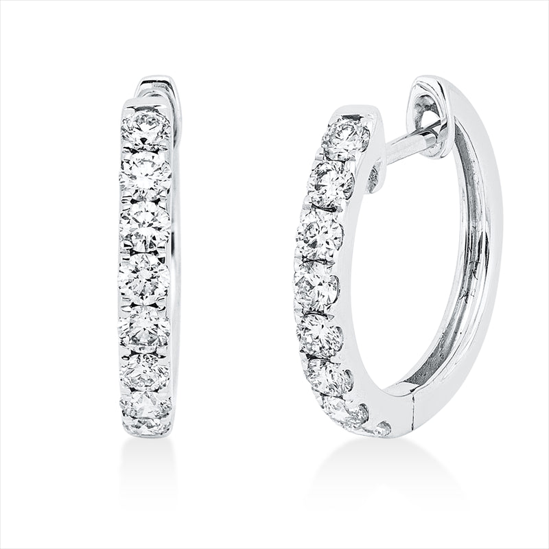Creolen 18 kt WG. 16 Brillanten 0.50 ct. W-pi. H:13.8 mm. B:15.1 mm. S:2.1 mm