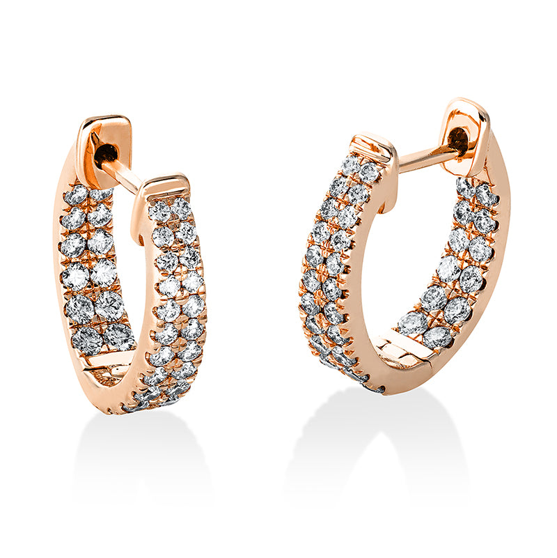 Creolen 18 kt RG. 68 Brillanten 1.01 ct. TW-si. H:16.6 mm. B:14.8 mm. S:4.0 mm