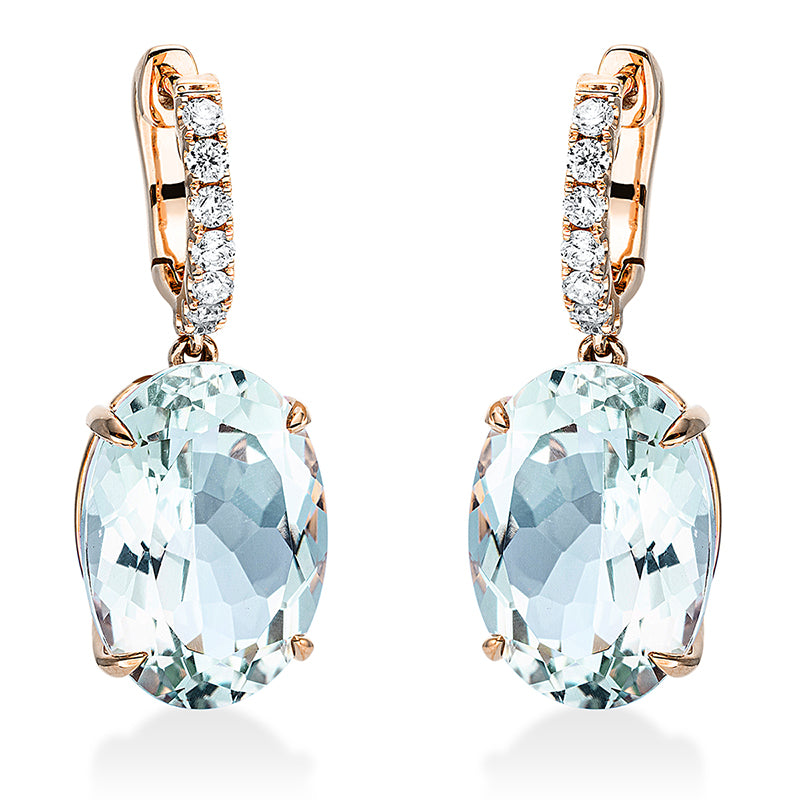 Ohrschmuck 18 kt RG, 14 Brill. 0,28 ct, TW-si, 2 Amethyste 11,30 ct grün
