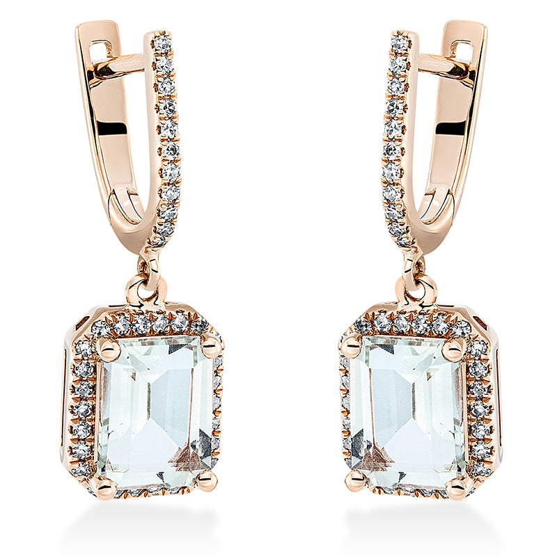 Ohrschmuck 18 kt RG, 74 Dia. 0,30 ct, TW-si, 2 Amethyste 3,05 ct grün