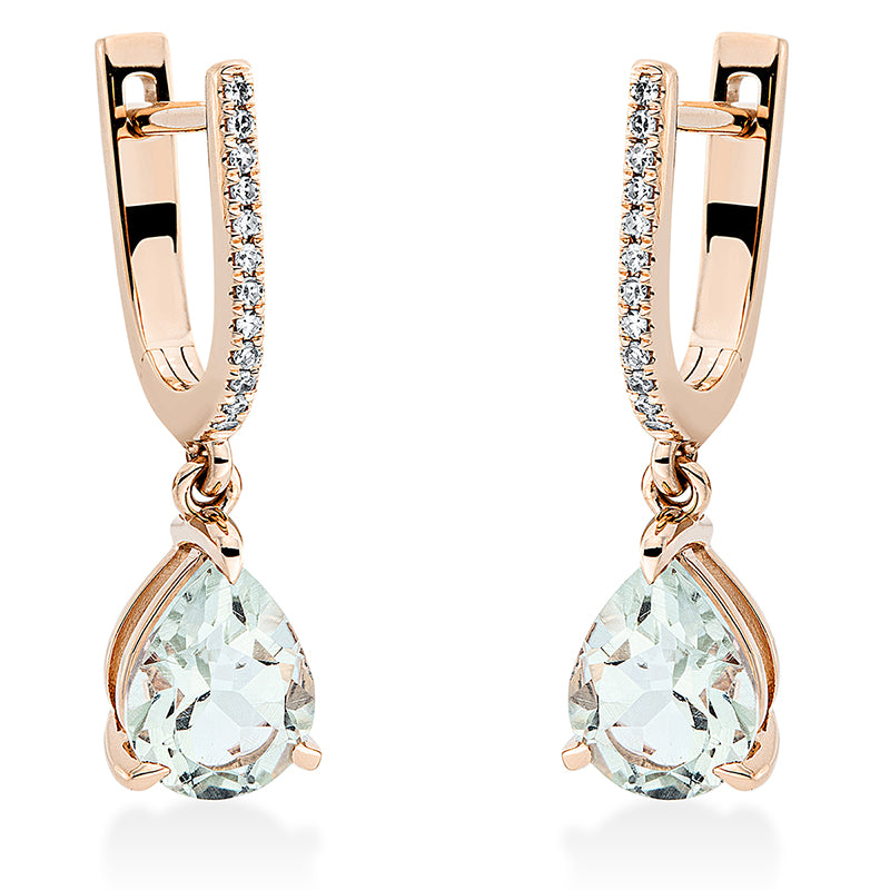 Ohrschmuck 18 kt RG, 24 Dia. 0,07 ct, TW-si, 2 Amethyste 2,08 ct grün