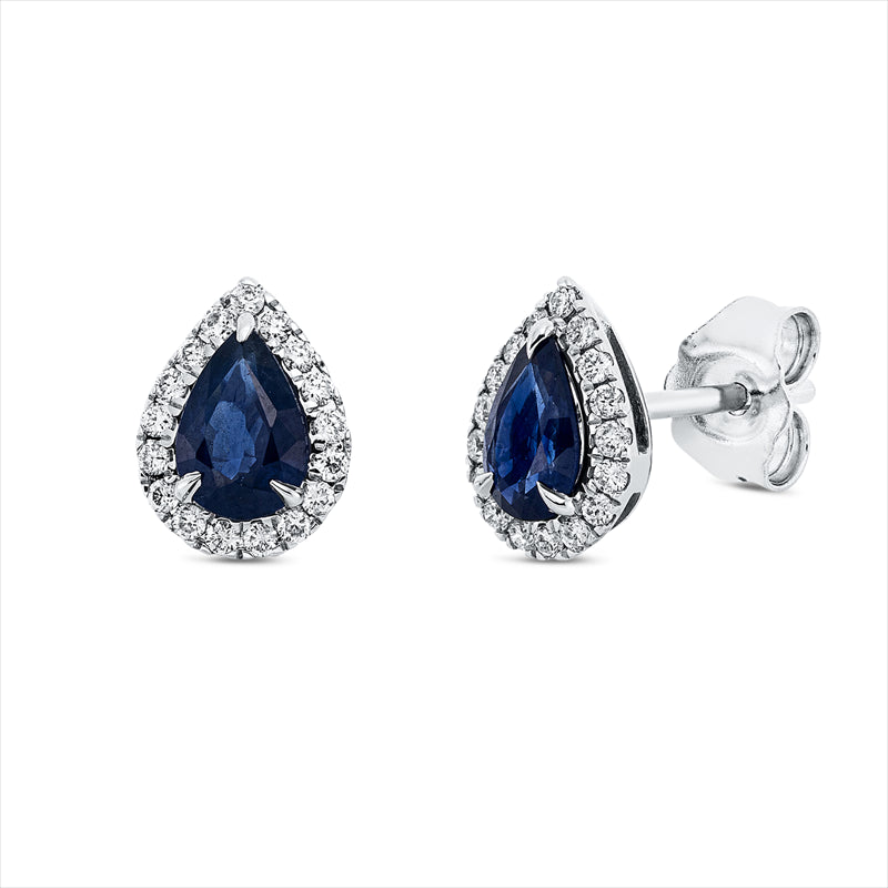 Ohrstecker 18 kt WG, 34 Brill. 0,16 ct, TW-si, 2 Saphire 0,82 ct blau