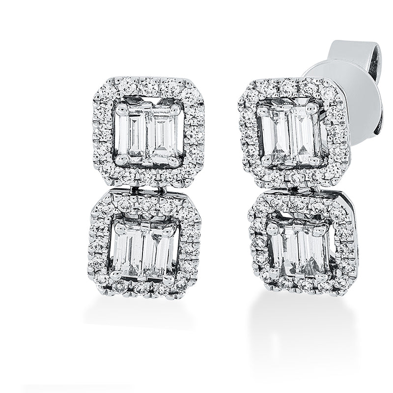 Ohrschmuck 18 kt WG. 8 Baguette 0.29 ct. TW-si. 64 Brillanten 0.26 ct. TW-si