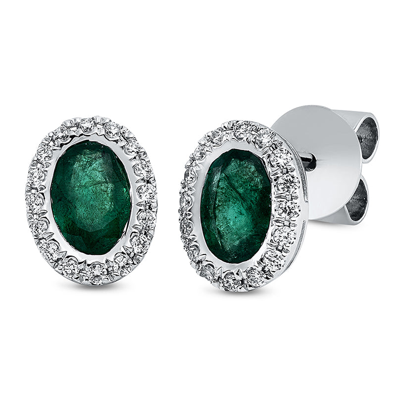 Ohrstecker 18 kt WG, 32 Brill. 0,14 ct, TW-si, 2 Smaragde 0,86 ct grün