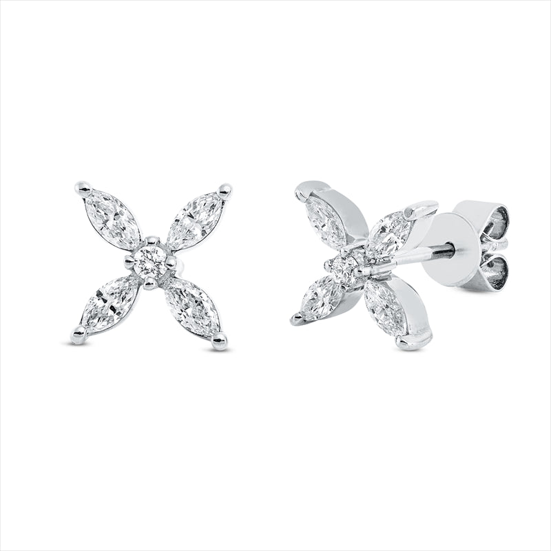 Ohrstecker 18 kt WG. 8 Navette 0.41 ct. TW-vsi. 2 Brillanten 0.04 ct. TW-si