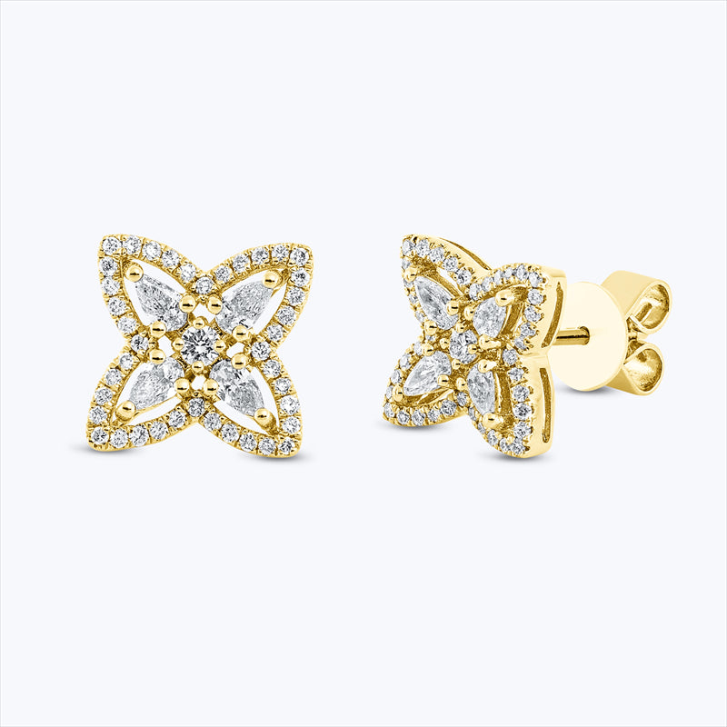 Ohrstecker 18 kt GG. 8 Tropfen 0.31 ct. TW-vsi. 82 Brillanten 0.26 ct. TW-si. H:9.4 mm. B:9.3 mm. S:3.5 mm