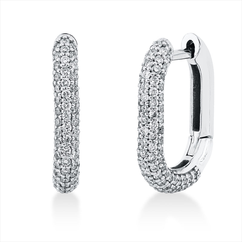 Creolen 18 kt WG. 198 Brillanten 0.83 ct. F-si. H:16.4 mm. B:12.7 mm. S:2.8 mm