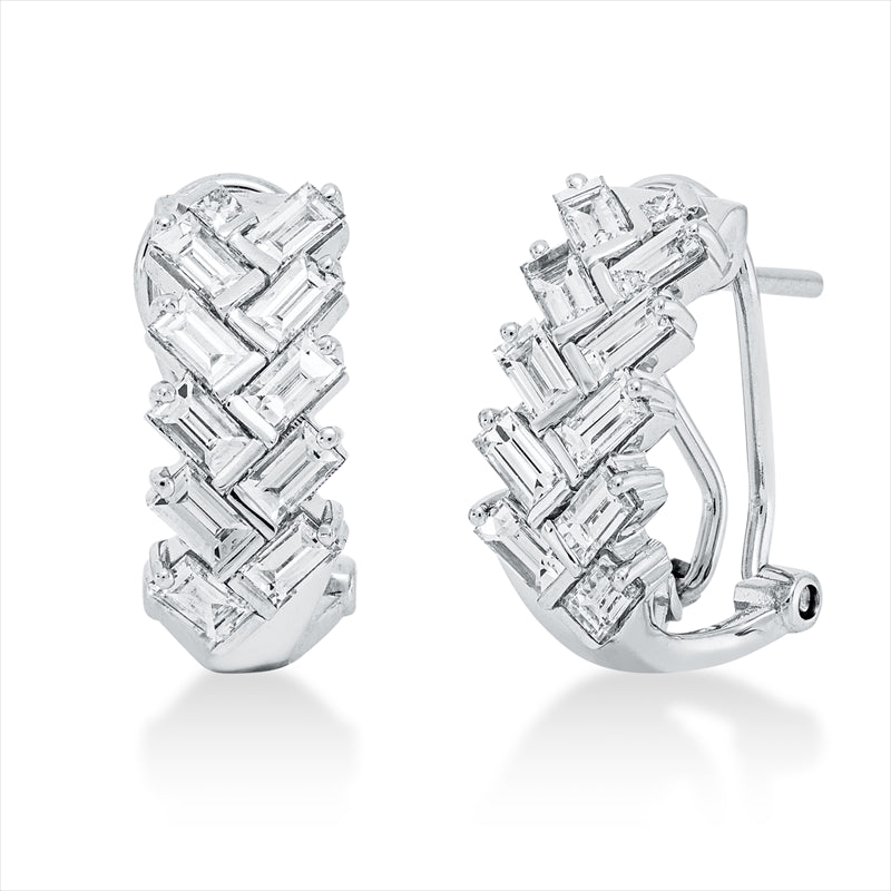 Creolen 18 kt WG. 20 Baguette 1.72 ct. F-vsi. 2 Princ. 0.05 ct. F-vsi. H:17.4 mm. B:12.4 mm. S:7.1 mm