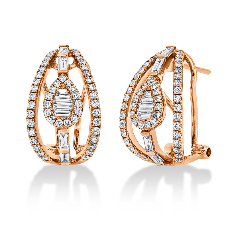 Creolen 18 kt RG. 16 Baguette 0.40 ct. F-vsi. 98 Brillanten 0.53 ct. TW-si. H:17.5 mm. B:16.6 mm. S:10.8 mm