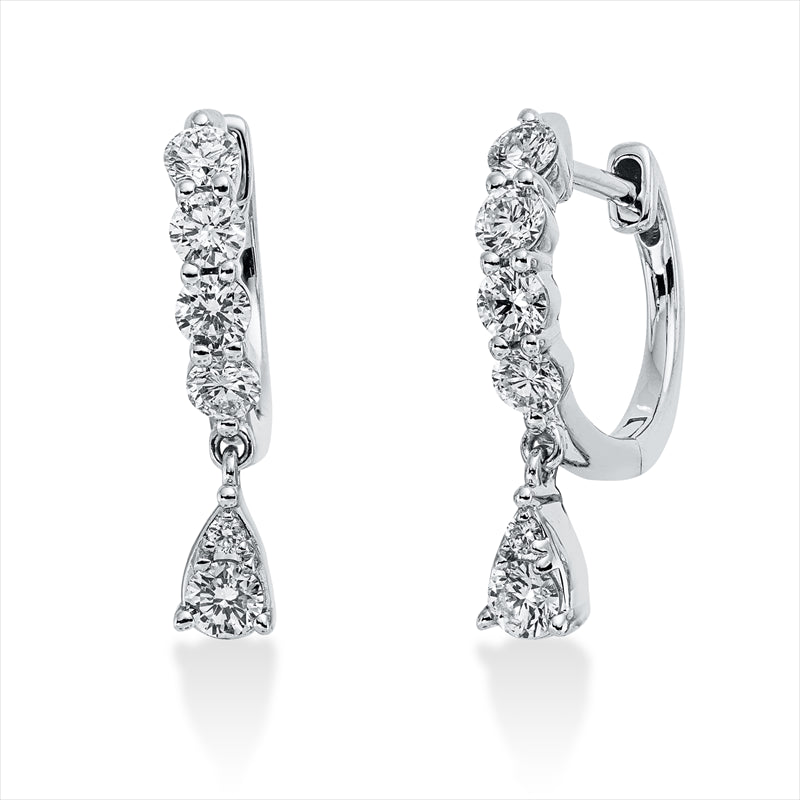 Ohrschmuck 18 kt WG, 2 Brill. 0,02 ct, TW-si, 2 Brill. 0,18 ct, TW-si, 8 Brill. 0,51 ct, TW-si