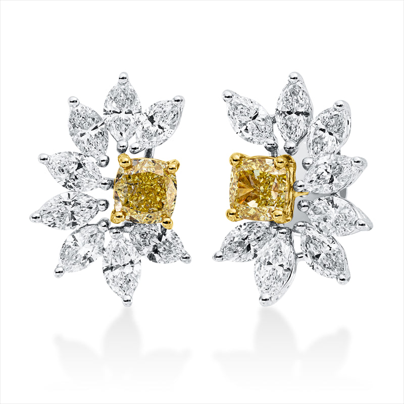 Ohrstecker 18 kt WG+GG. 16 Navette 1.39 ct. TW-si. 2 Cushion 0.88 ct. gelb