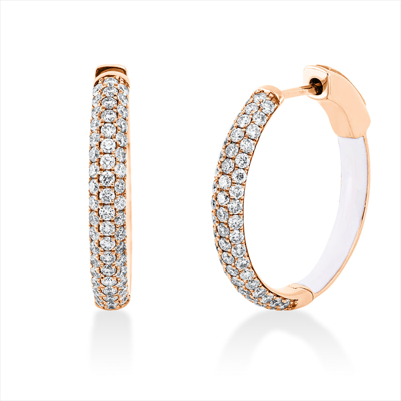 Creolen 18 kt RG. 110 Brillanten 0.86 ct. TW-si. 2 Emaille weiß. H:19.8 mm. B:19.8 mm. S:3.0 mm