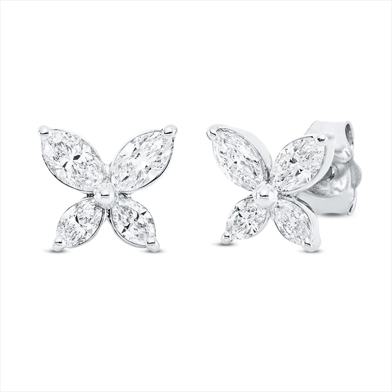 Ohrstecker 18 kt WG. 4 Navette 0.40 ct. TW-si. 4 Navette 0.20 ct. TW-si