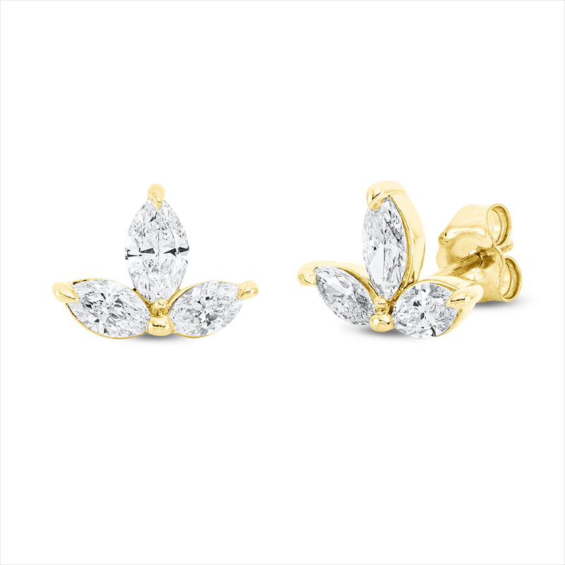 Ohrstecker 18 kt GG, 2 Nav. 0,32 ct, TW-si, 2 Nav. 0,50 ct, TW-si, 2 Nav. 0,40 ct, TW