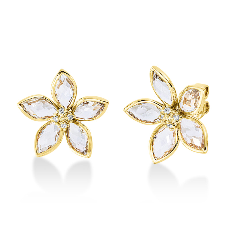 Ohrstecker 18 kt GG, 8 Brill. 0,10 ct, TW-si, 10 Amethyste 5,50 ct grün