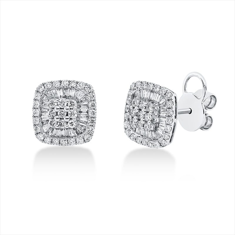 Ohrstecker 18 kt WG, 50 Trap. 0,36 ct, TW-si, 66 Brill. 0,59 ct, TW-si