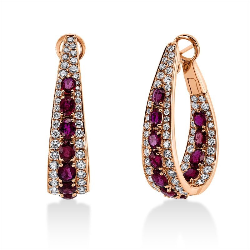 Creolen 18 kt RG, 134 Brill. 2,98 ct, TW-vsi/si, 22 Rubine 5,42 ct rot