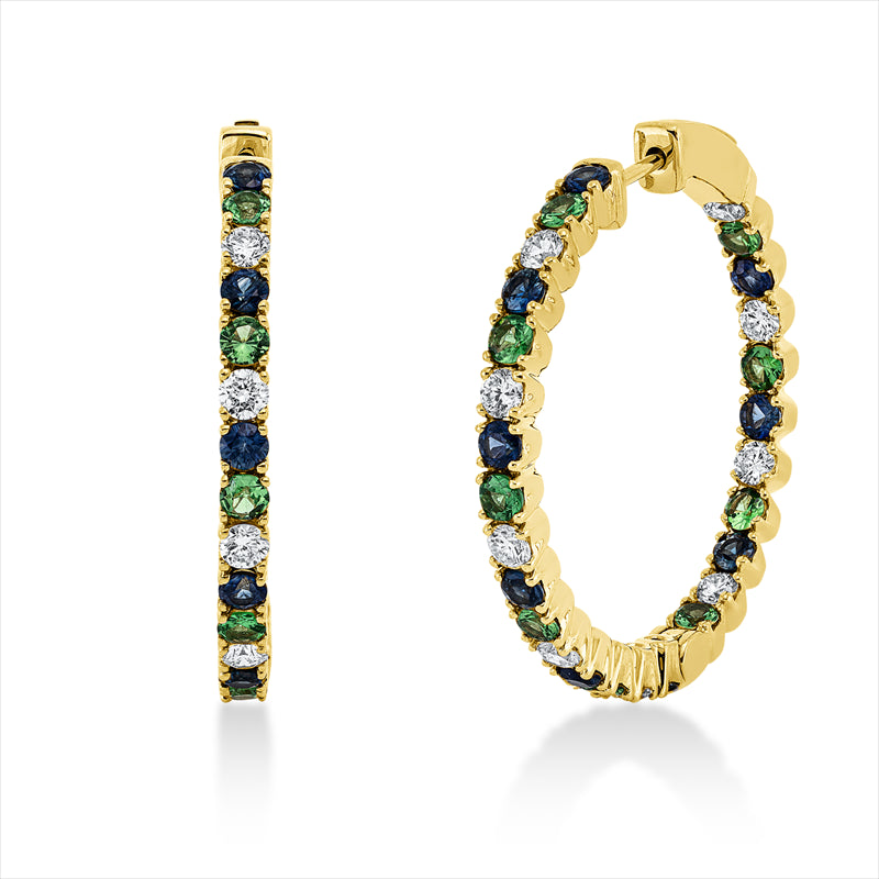 Ohrstecker 18 kt GG, 8 Brill. 0,31 ct, TW-vsi/si, 72 Saphire 3,59 ct multicolor