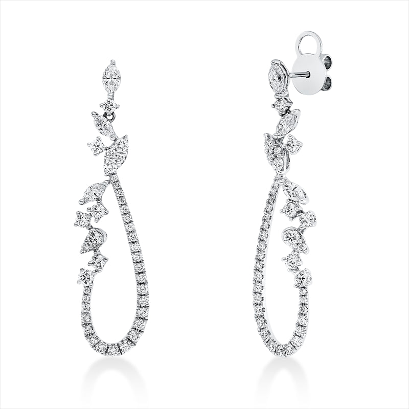 Ohrschmuck 18 kt WG. 6 Navette 0.67 ct. F-vsi. 76 Brillanten 1.69 ct. F-vsi