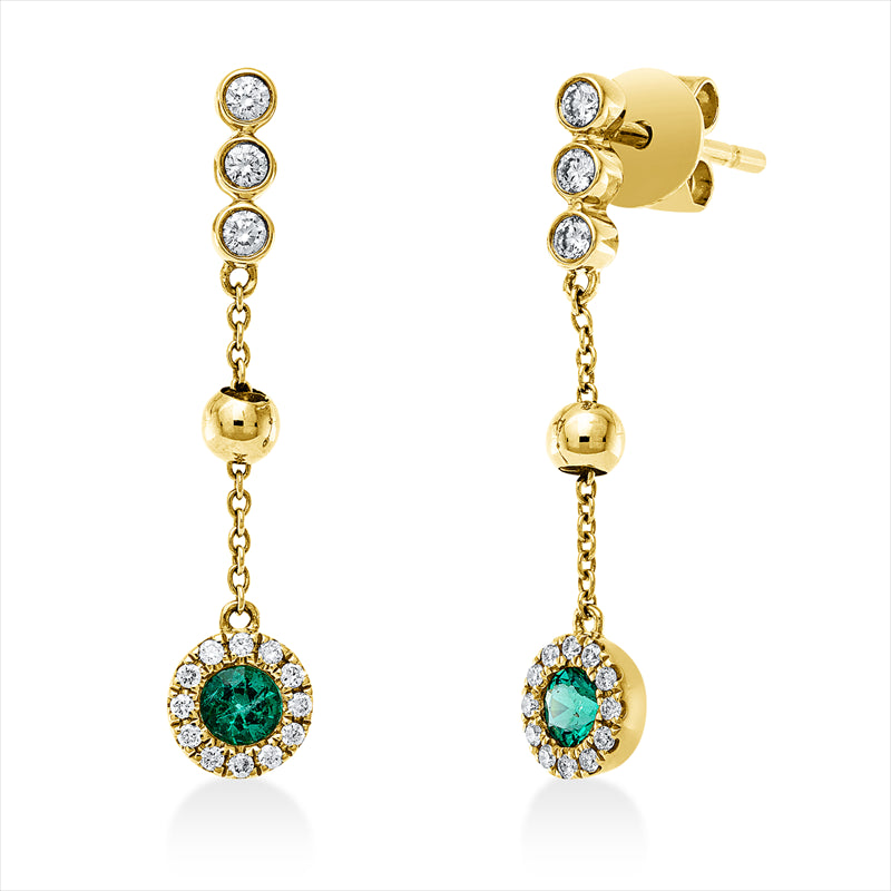 Ohrschmuck 14 kt GG, 30 Brill. 0,18 ct, TW-si, 2 Smaragde 0,20 ct grün