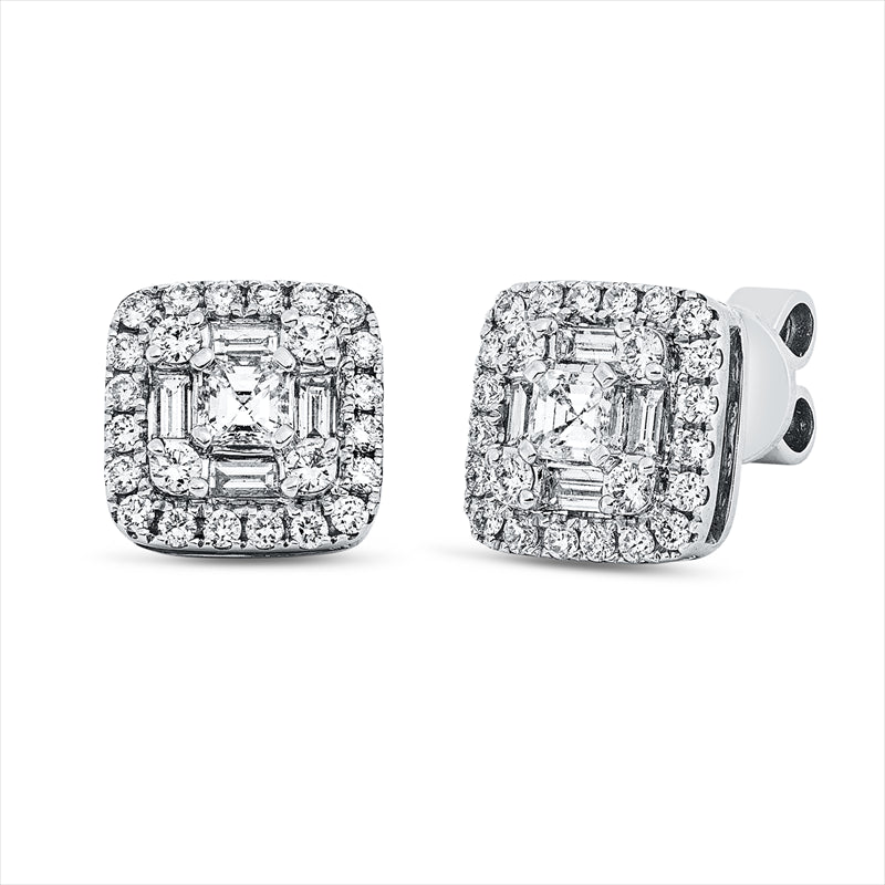 Ohrstecker 18 kt WG. 8 Baguette 0.24 ct. TW-vsi/si. 2 Assher 0.30 ct. TW-vsi/si. 48 Brillanten 0.50 ct. TW-vsi/si