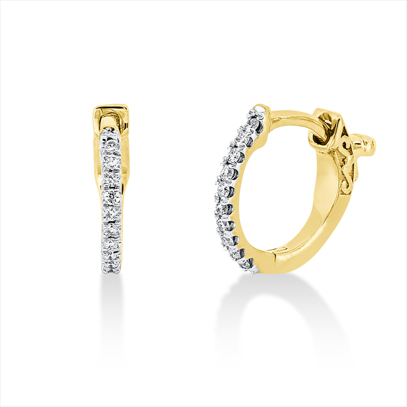 Creolen 18 kt GG, Fassung rhodiniert, 20 Brill. 0,10 ct, TW-si