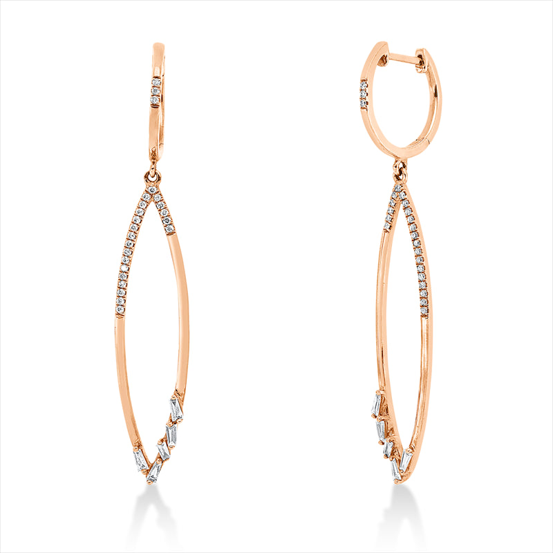 Creolen 18 kt RG. 10 Trapeze 0.19 ct. TW-si. 48 Brillanten 0.14 ct. TW-si