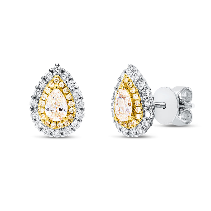 Ohrstecker 18 kt WG+GG, 32 Brill. 0,28 ct, TW-si, 2 Tropfen 0,40 ct, gelb, 34 Brill. 0,09 ct, gelb