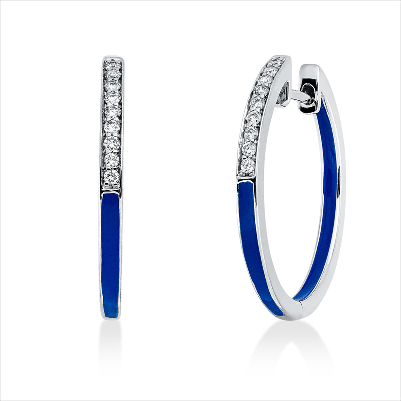 Creolen 18 kt WG, 18 Brill. 0,08 ct, TW-si, 1 Emaille dunkelblau