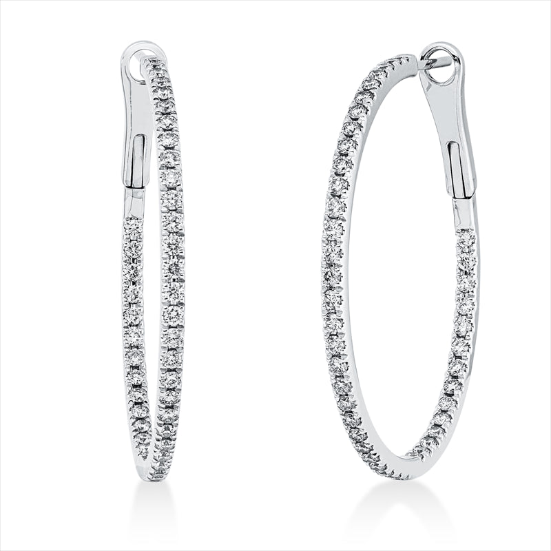 Creolen 18 kt WG. 86 Brillanten 1.04 ct. TW-si. H:34.2 mm. B:33.7 mm. S:1.8 mm