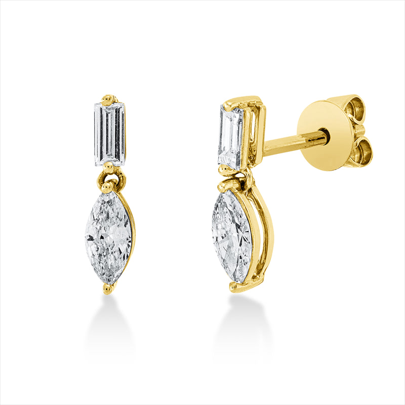 Ohrstecker 18 kt GG. 2 Baguette 0.19 ct. TW-vsi/si. 2 Navette 0.35 ct. TW-vsi/si