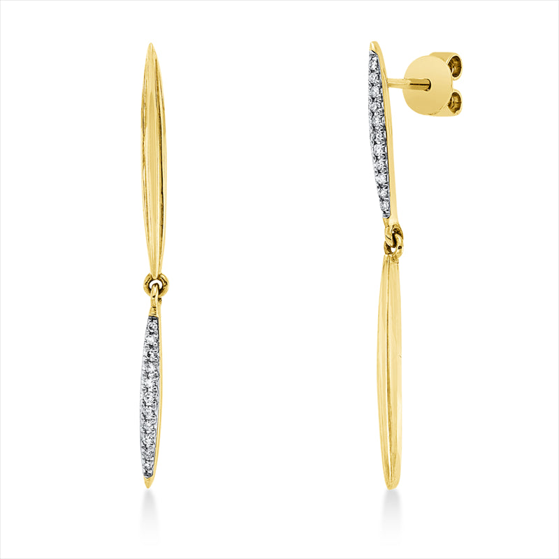 Ohrschmuck 14 kt GG. Fassung rhodiniert. 22 Diamanten 0.06 ct. W-pi. H:32.7 mm. B:2.0 mm