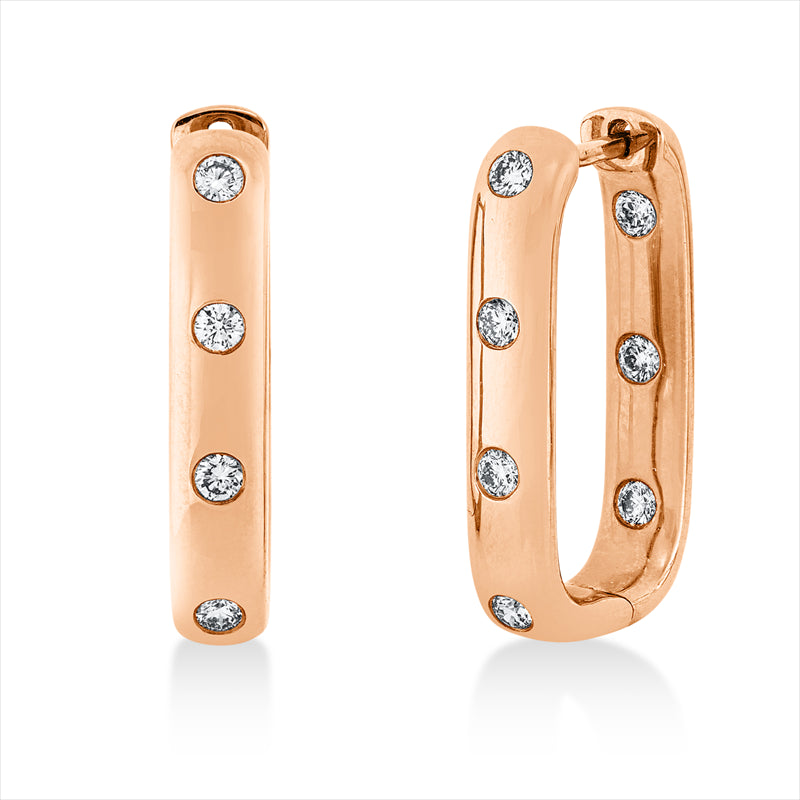 Creolen Zarge 18 kt RG. 14 Brillanten 0.40 ct. I-si. H:21.0 mm. B:11.5 mm. S:4.0 mm