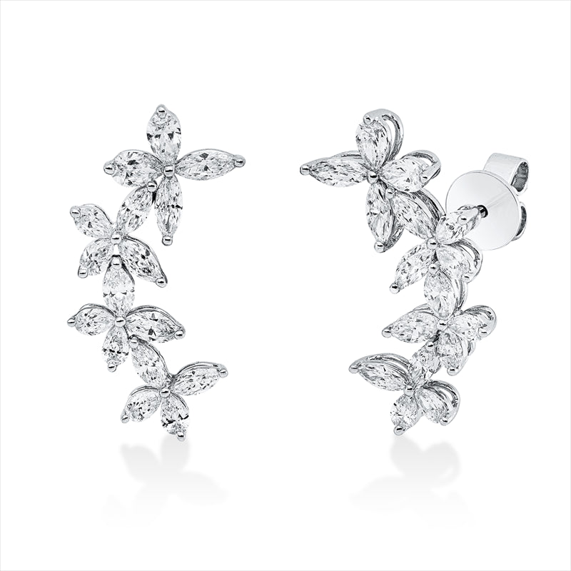 Ohrstecker 18 kt WG, 16 Tropfen 0,75 ct, TW-vsi, 16 Nav. 0,88 ct, TW-vsi