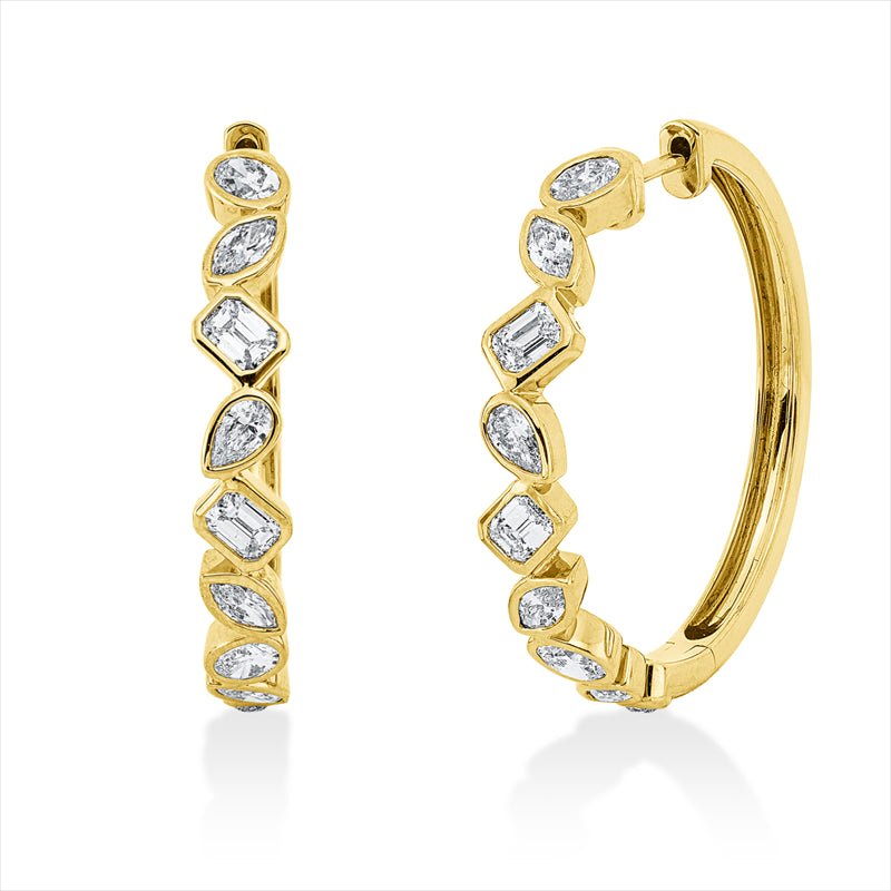 Creolen 18 kt GG, 4 Ov 0,53 ct, 2 Tr 0,16 ct, 6 Nav. 0,48 ct, 4 Sm 0,56 ct, vsi, 2 Brill. 0,05 ct, TW-si