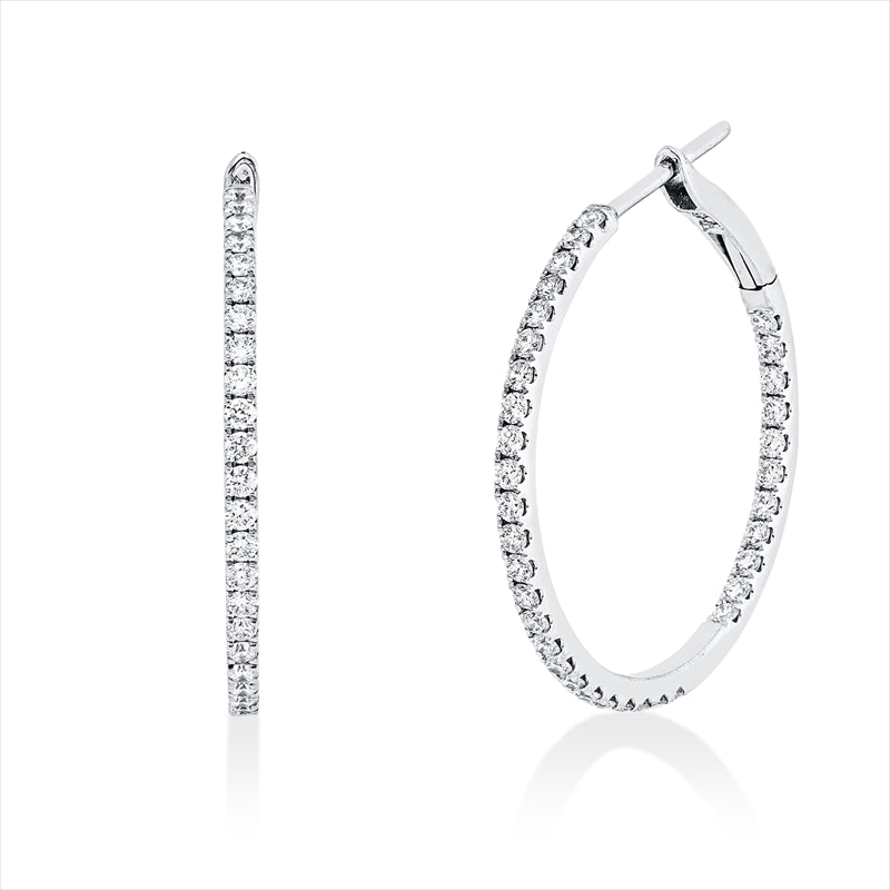 Creolen 18 kt WG. 74 Brillanten 0.84 ct. TW-si. H:25.3 mm. B:24.6 mm. S:1.4 mm