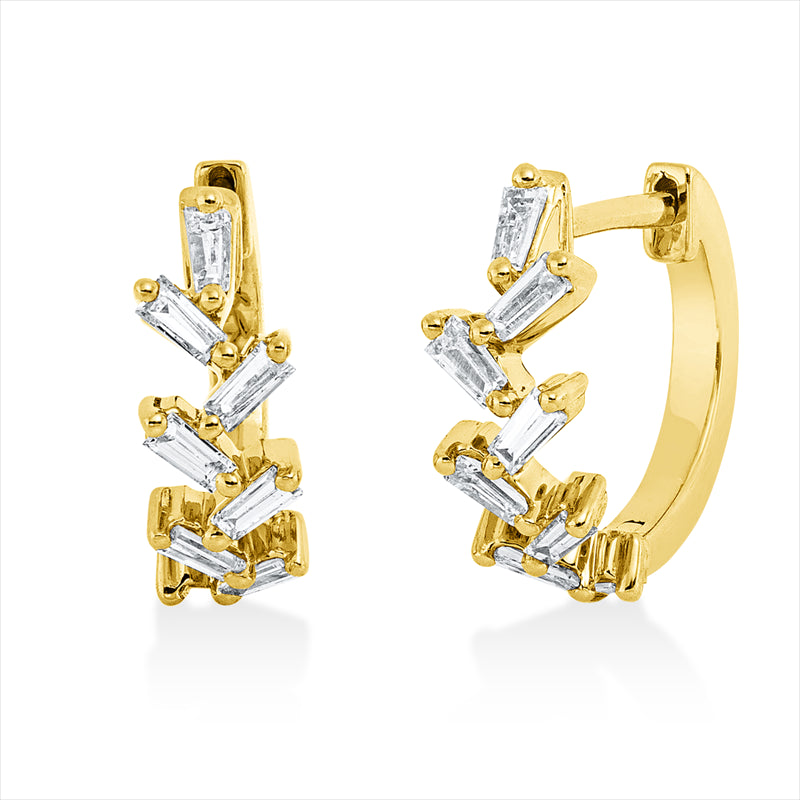 Creolen 18 kt GG, 16 Trap. 0,33 ct, TW-si
