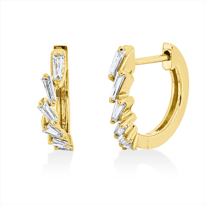 Creolen 18 kt GG, 12 Trap. 0,23 ct, TW-si
