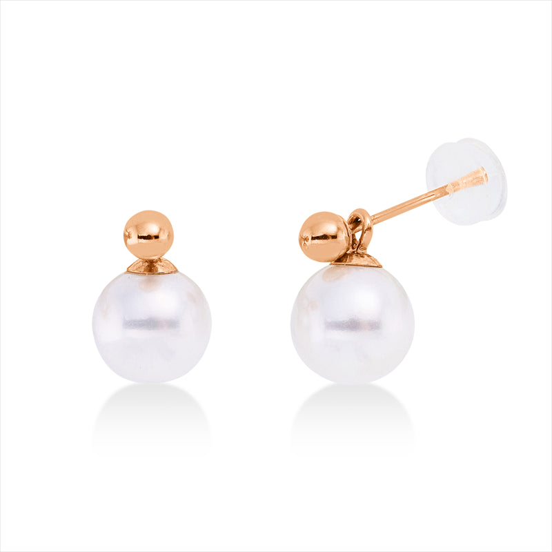 Ohrstecker 18 kt RG, 2 SW weiß 7 mm