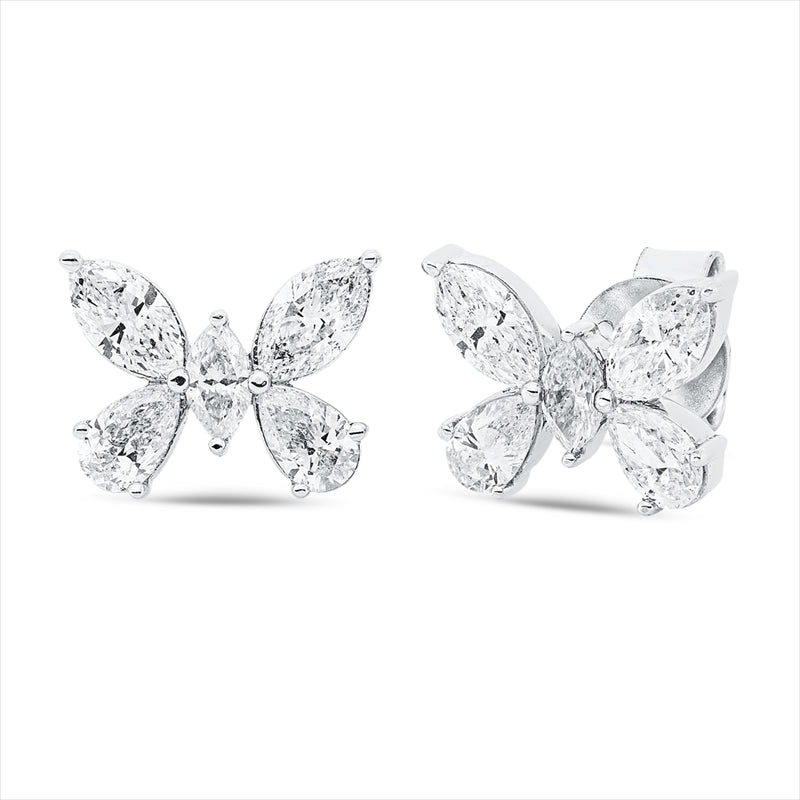Ohrstecker 18 kt WG Schmetterling. 2 Navette 0.16 ct. TW-si. 4 Navette 0.64 ct. TW-si. 4 Tropfen 0.48 ct. TW-si. H:8.1 mm. B:10.6 mm. S:2.2 mm