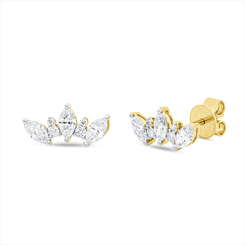 Ohrstecker 18 kt GG+WG. 6 Navette 0.43 ct. TW-vsi. 8 Brillanten 0.06 ct. TW-si