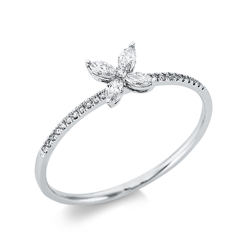 Ring 18 kt WG. 4 Navette 0.15 ct. TW-vsi/si. 21 Brillanten 0.10 ct. TW-vsi/si. Weite:53