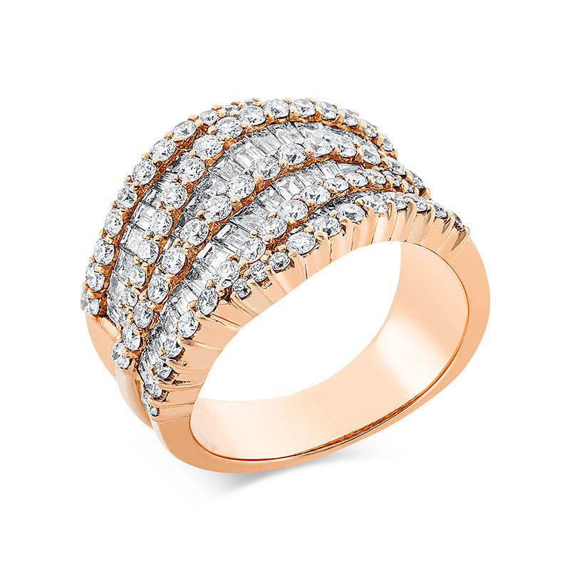 Ring 18 kt RG, 49 Trap. 1,66 ct, TW-vsi, 69 Brill. 1,20 ct, TW-vsi