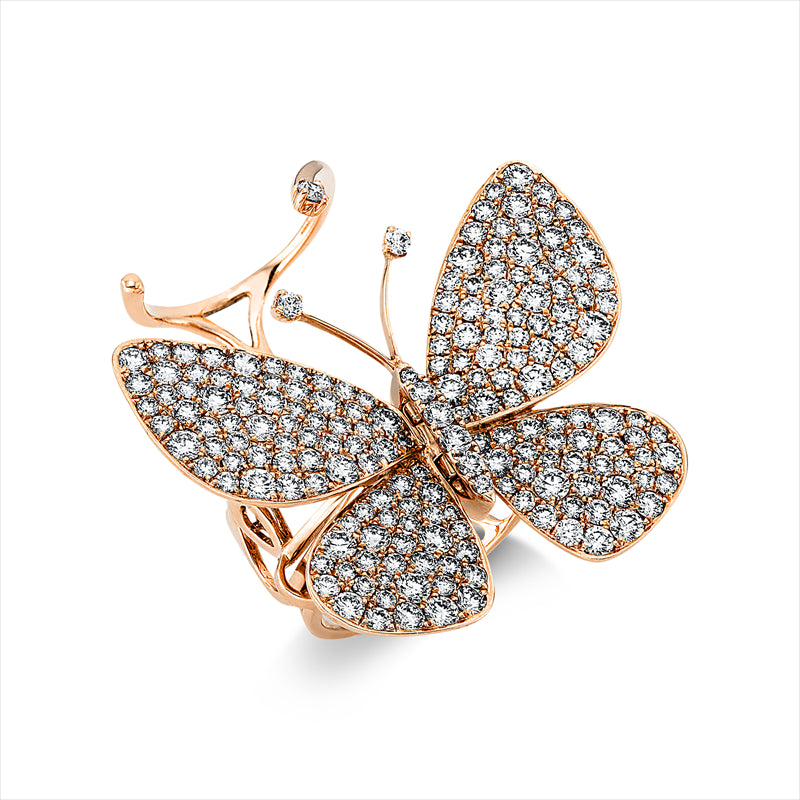 Ring 18 kt RG Schmetterling. 191 Brillanten 5.27 ct. TW-vsi/si. Weite:54